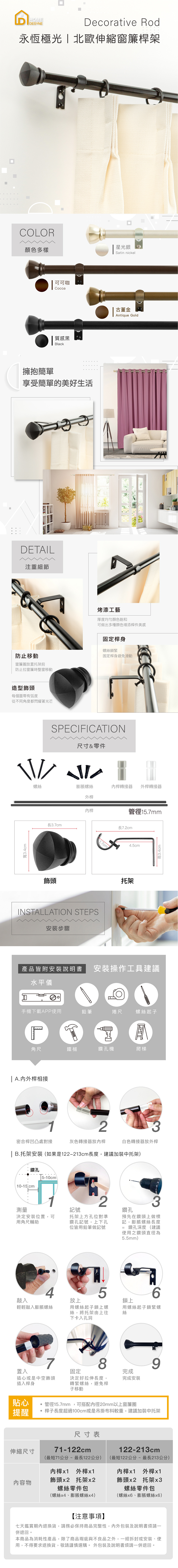 塑膠(飾頭)│金屬(托架)│鋼管(伸縮桿)