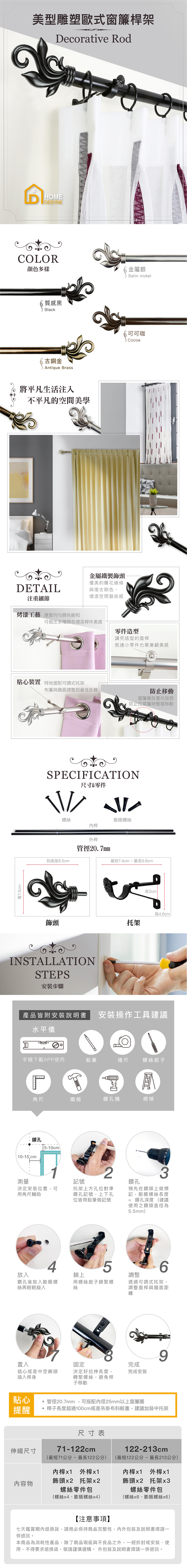 20.7mm│美型雕塑│伸縮窗簾桿架│2尺寸│4色