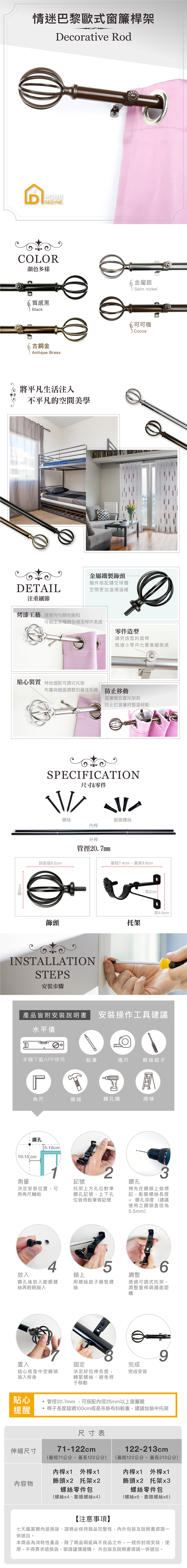 20.7mm│情迷巴黎│伸縮窗簾桿架│2尺寸│4色