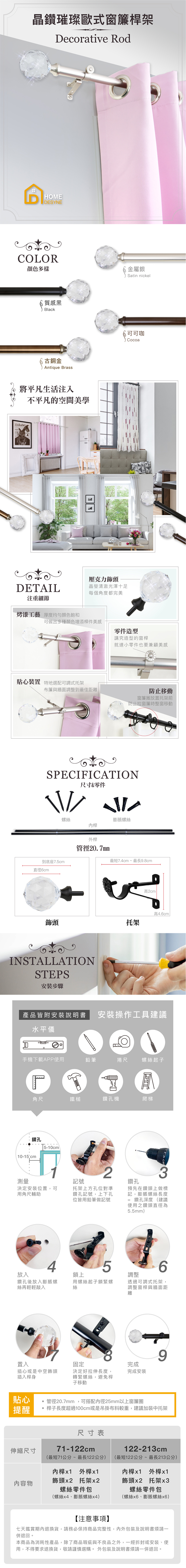 壓克力(飾頭)│金屬(托架) │鋼管(伸縮桿)