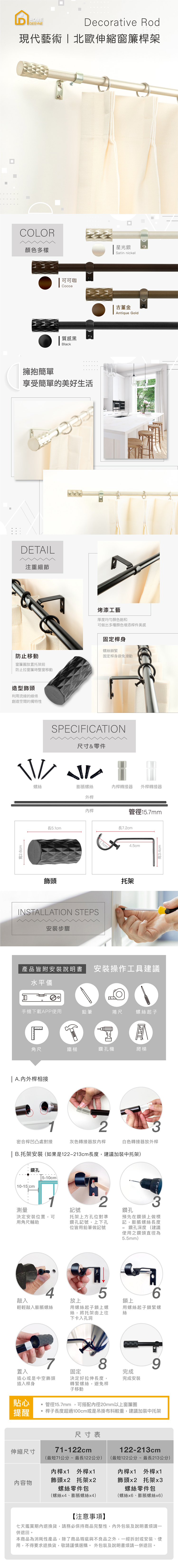 塑膠(飾頭)│金屬(托架)│鋼管(伸縮桿)