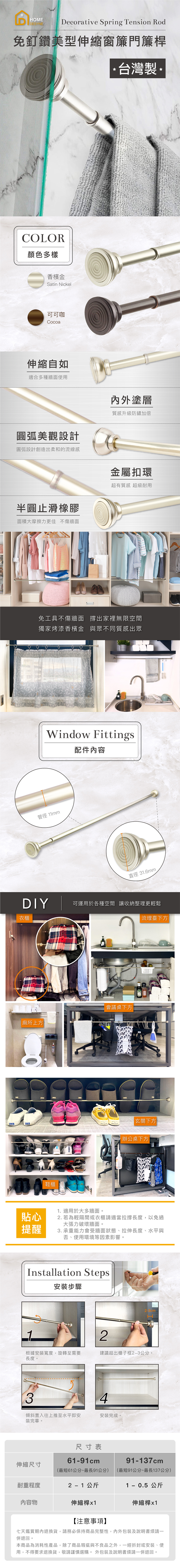 不傷牆面的窗簾桿,可搭配15mm以上窗簾圈