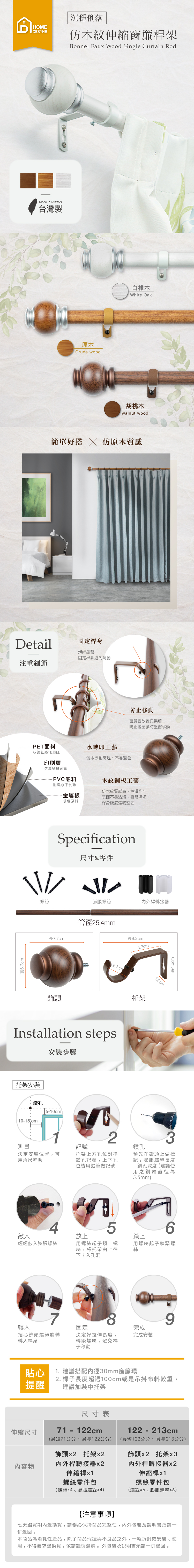 25.4mm│沉穩俐落│仿木紋│伸縮窗簾桿架│2尺寸│3色