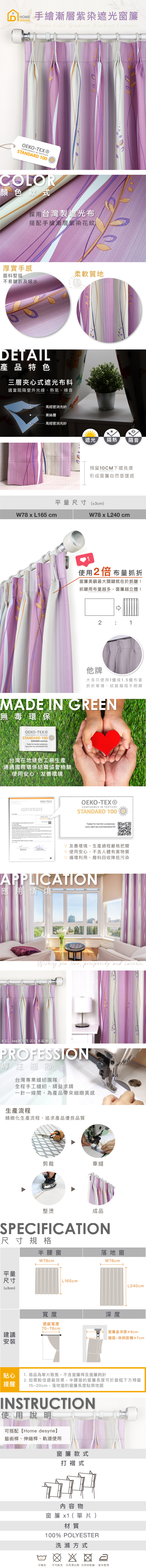 手工製作│遮光窗簾│半窗落地窗│手繪漸層紫染│打摺│2尺寸
