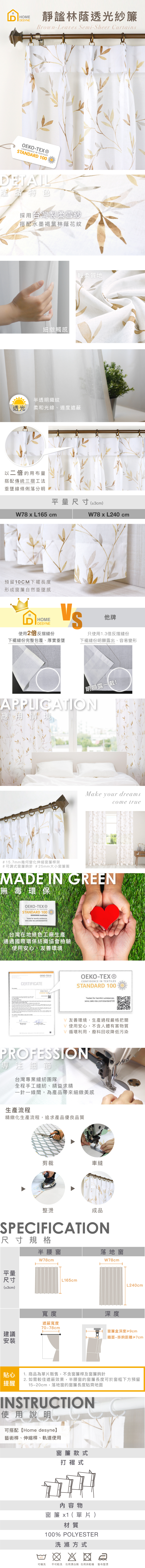 手工製作│靜謐林蔭│透光窗紗窗簾│半窗落地窗│打摺│2尺寸